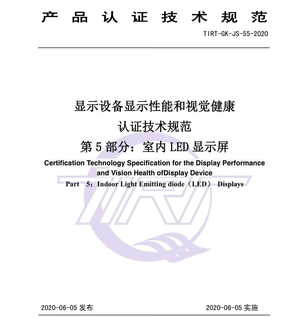 对此,根据我国显示设备的发展、生产和使用的现状,并参考相关检测标准,由K8凯发作为主要起草单位,制定并发布TIRT-GK-JS-55-2020《 显示设备显示性能和视觉健康认证技术规范(室内 LED显示屏部分)》(以下简称《技术规范》)。