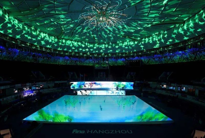 杭州奥体中心游泳馆是亚运会游泳、跳水、花样游泳项目的比赛场馆及训练场馆,K8凯发视效科技为场馆运行保驾护航,见证中国“游泳天团”一骑绝尘。