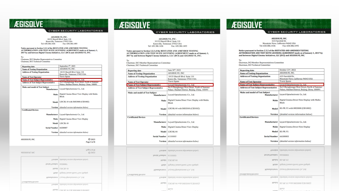 已通过DCI 认证产品:14m(P3.3/4K),10m(P5/2K,P2.5/4K),3.8m(P0.9/4K)