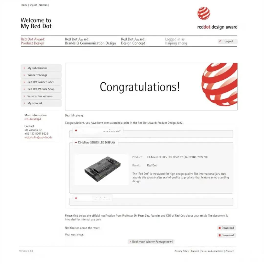 2022年,TX系列产品夺得设计界奥斯卡奖“红点设计奖”