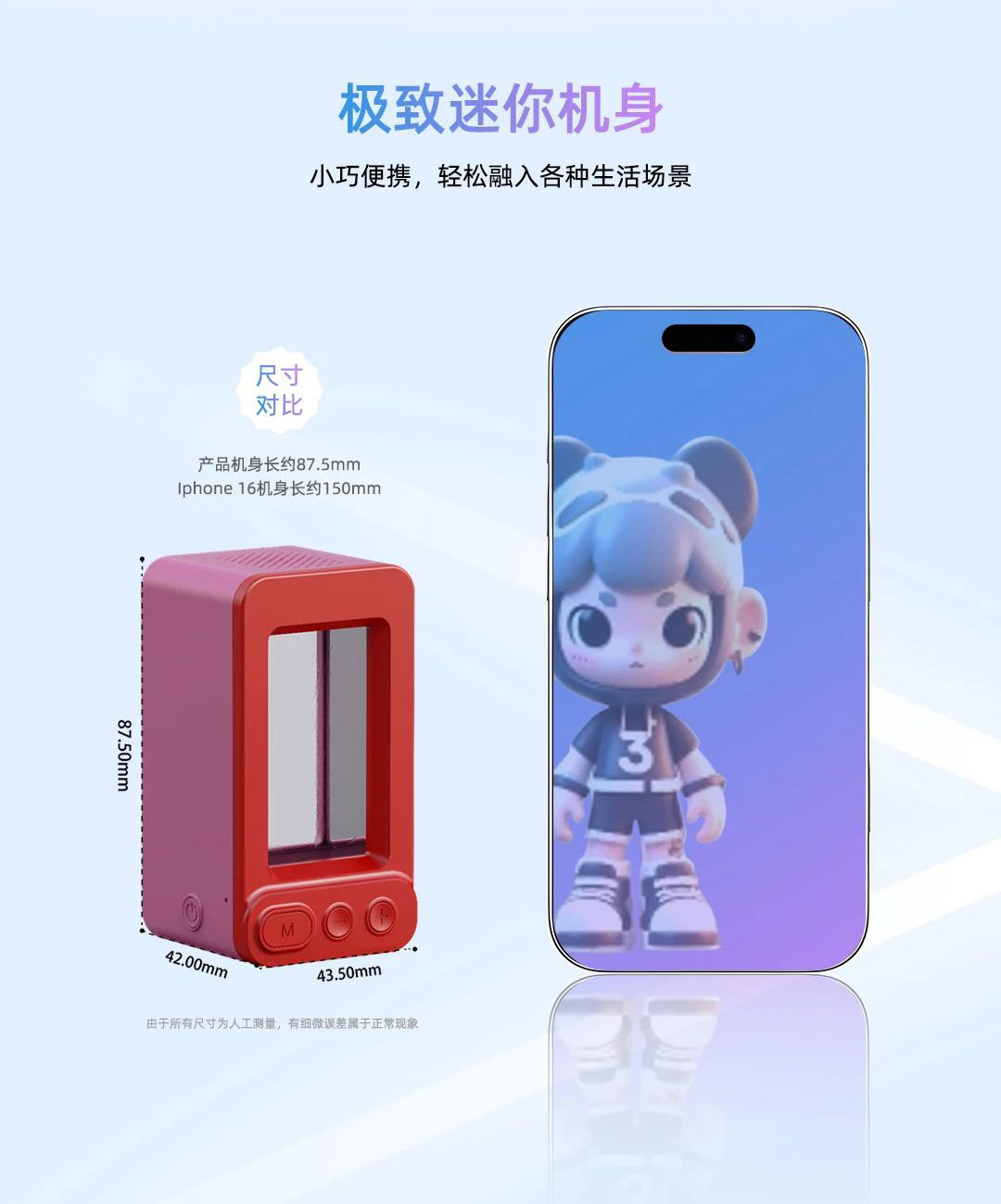 K8凯发·虚拟动点Mini AI全息玩具融合领先的智慧显示技术、AI和空间计算技术、交互式动作内容生产能力,是行业内唯一不惧反射眩光产品。每一次与它的互动,都像是开启了一场穿越现实与虚拟边界的奇妙之旅。