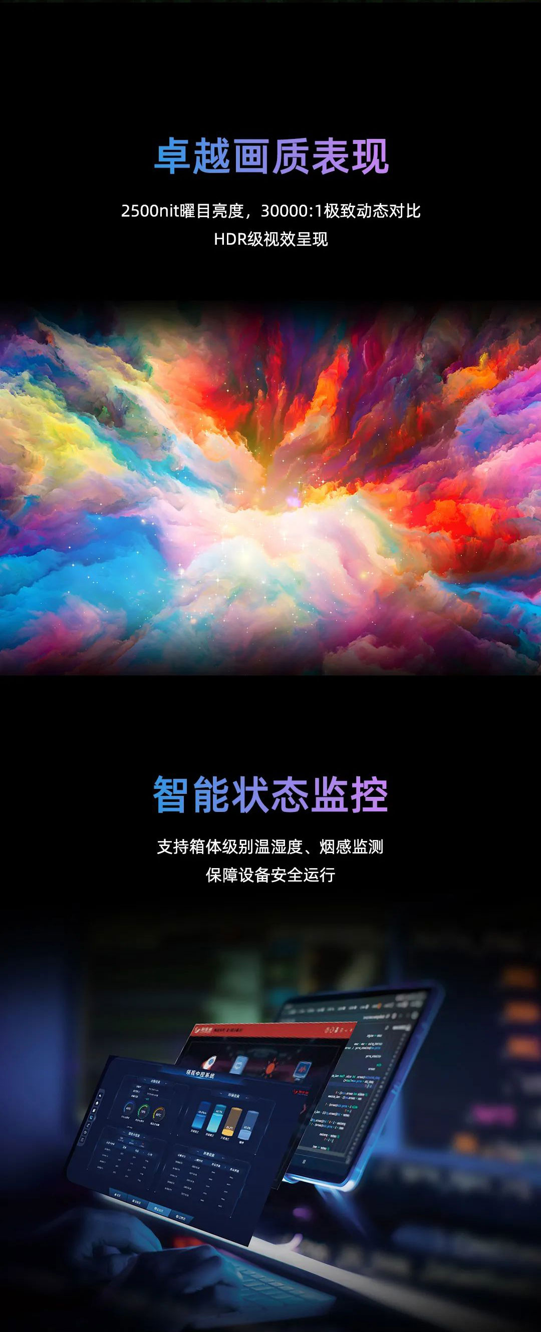 K8凯发新一代MG冷屏系列采用Micro显示技术,配备极致深黑模组与超高亮度显示,呈现2500nit亮度与30000:1对比度;搭载K8凯发最新节能恒流驱动芯片,在25℃室温环境,600亮度下屏幕表面温度≤30°C。
